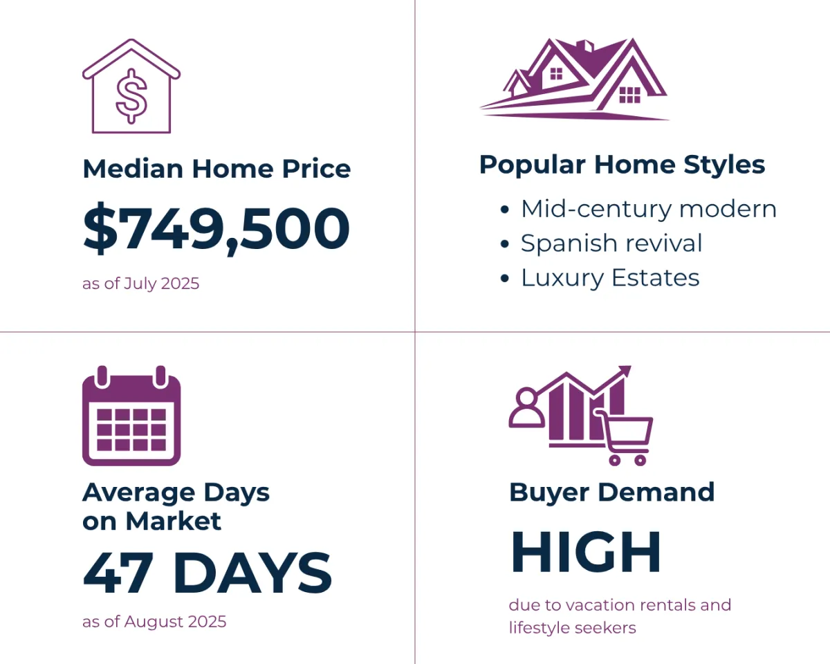 Palm Springs is a desert oasis known for its year-round sunshine, stunning mountain views, and mid-century modern charm. Located in the heart of the Coachella Valley, this vibrant city combines resort-style living with a thriving cultural scene. From world-class golf courses and art galleries to relaxing poolside afternoons, Palm Springs offers a lifestyle that feels like a permanent vacation.